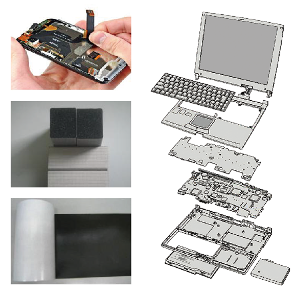 適用于筆記本電腦或手機周邊產品(如:電源供應器、整流器、變壓器、連接器等);電子產品及軍用設施的EMI/RFI屏蔽、導電及靜電釋放。